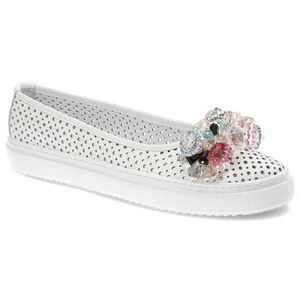 Bílé Balerínky DAMISS Boty Z Přírodní Kůže